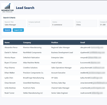 Momentum’s lead finder saved us hours weekly and boosted our sales pipeline fast.